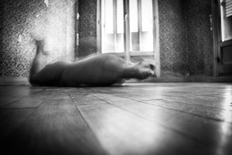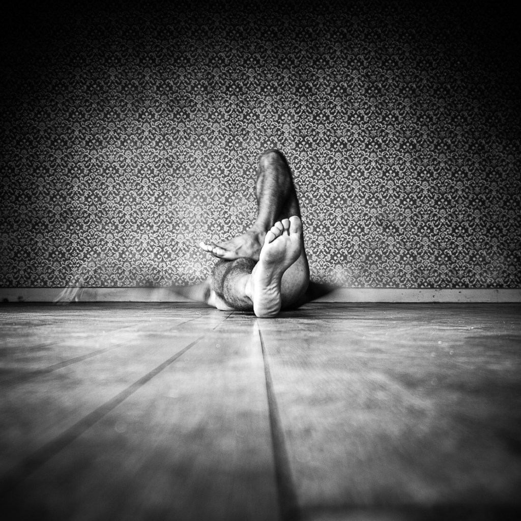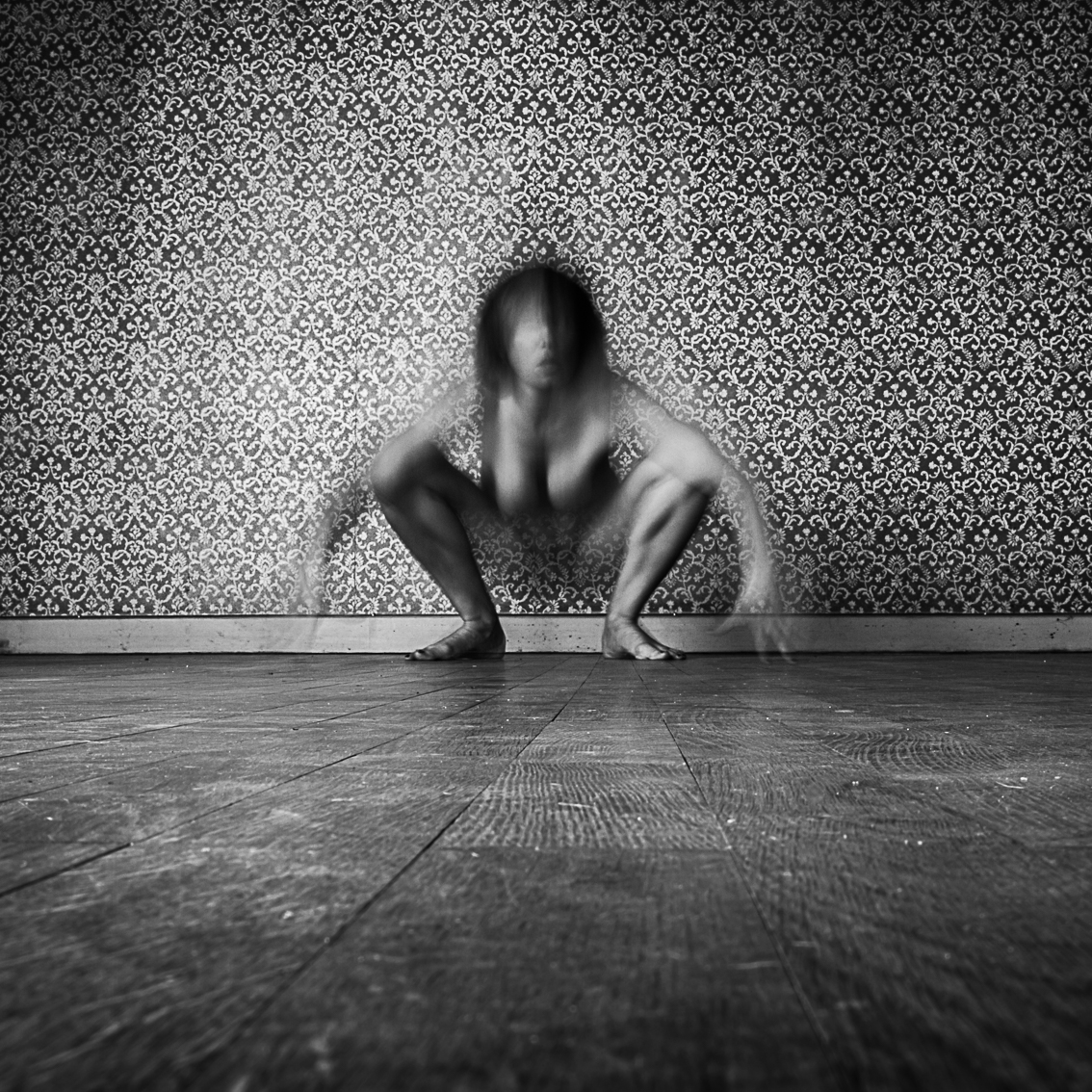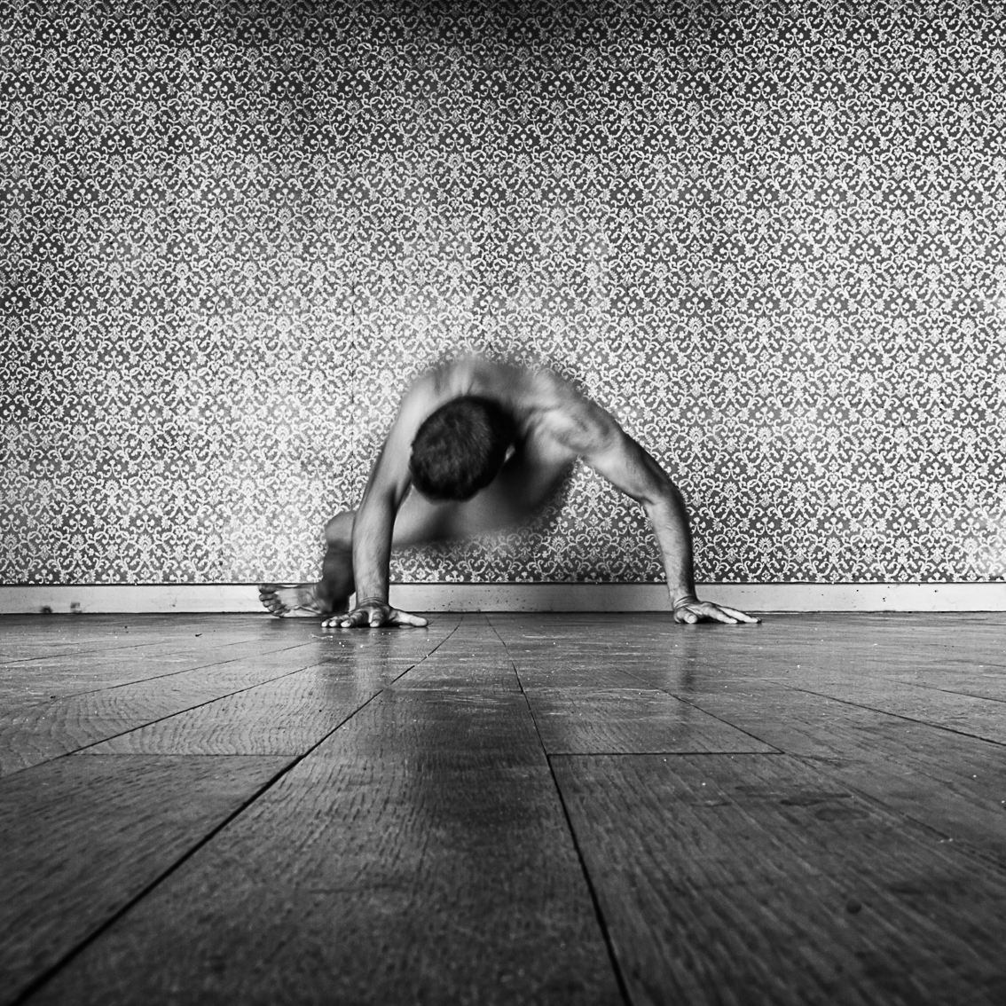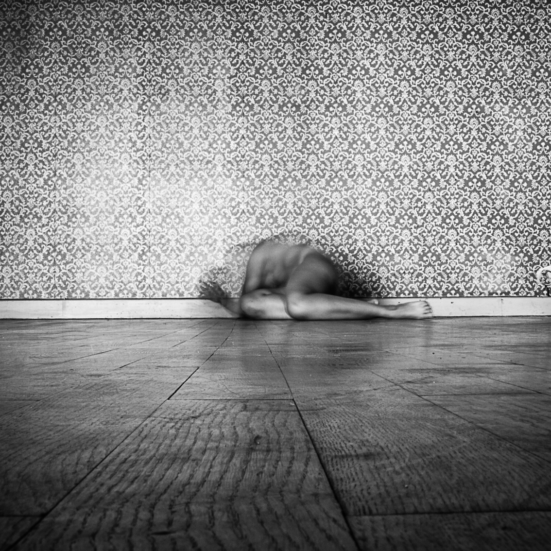 Elles ont occupé cet espace limité, suivant leur humeur, leur pudeur, faisant abstraction de la présence de la photographe. Nues, elles n’ont plus chercher à être ni dans le contrôle de leur corps, ni de leur esprit, ni de leur image, juste ont elles tentées d’être elles-mêmes, de lâcher prise tout en éventuellement se laissant envahir, inspirer de l’ambiance de cette pièce avec son parquet bois, sa tapisserie fleurie des années 50 et sa belle lumière naturelle.